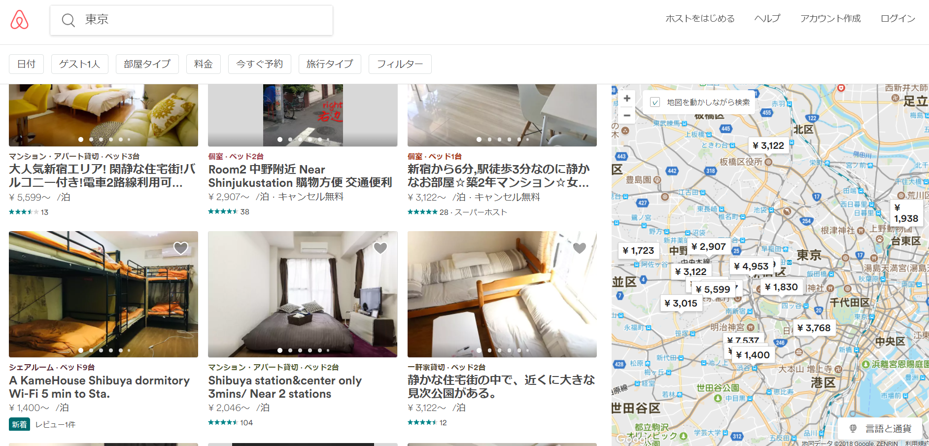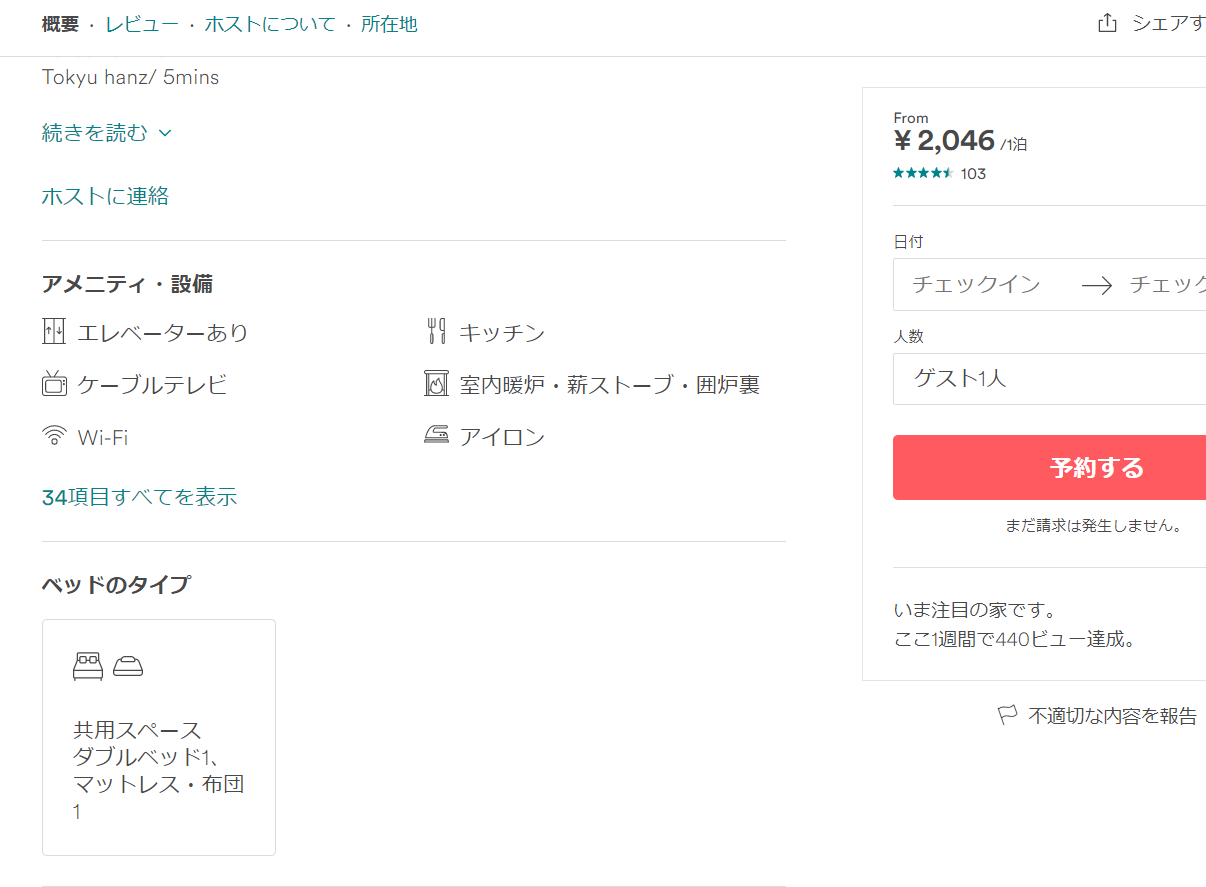 Airbnbでアメニティを確認することができます。Airbnbのサイトを開きます。