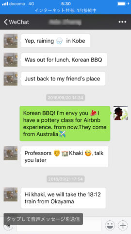 中国人ゲストもAirbnbのメッセージは使いにくいようで、2日目ぐらいに「WeChat」でやり取りしようと言われました。