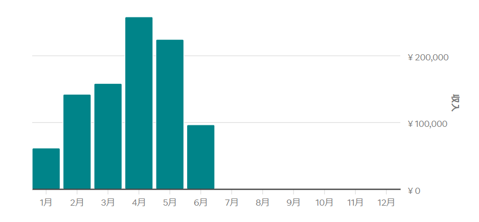 上半期一番すくないのは1月で6万円。一番多い4月で24万ぐらいです。