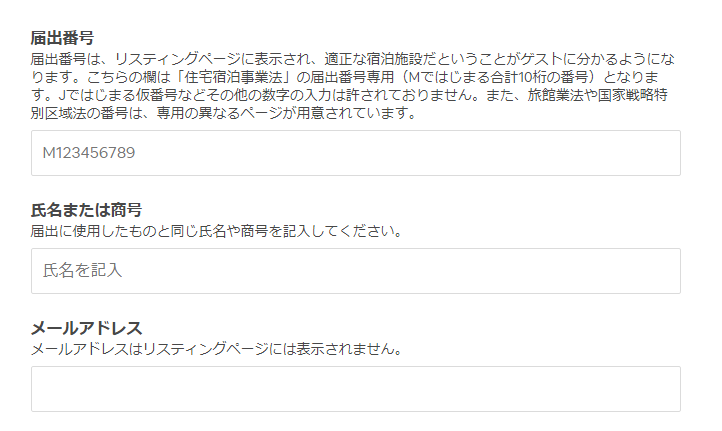 すると届出番号を記入する箇所があります。いまは適当にM123456789となっていますが、このまま記入した場合でも掲載されるみたいです。